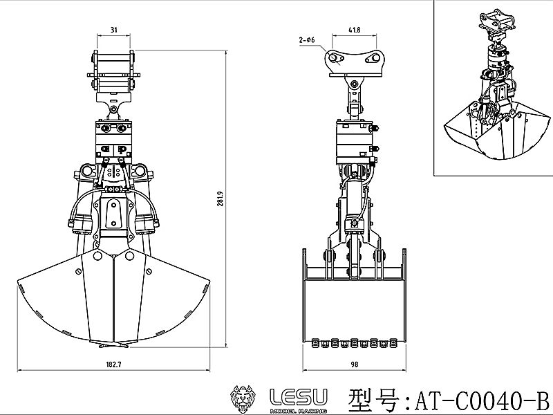 Zweischalengreifer für Lesu Bagger, Variante B1